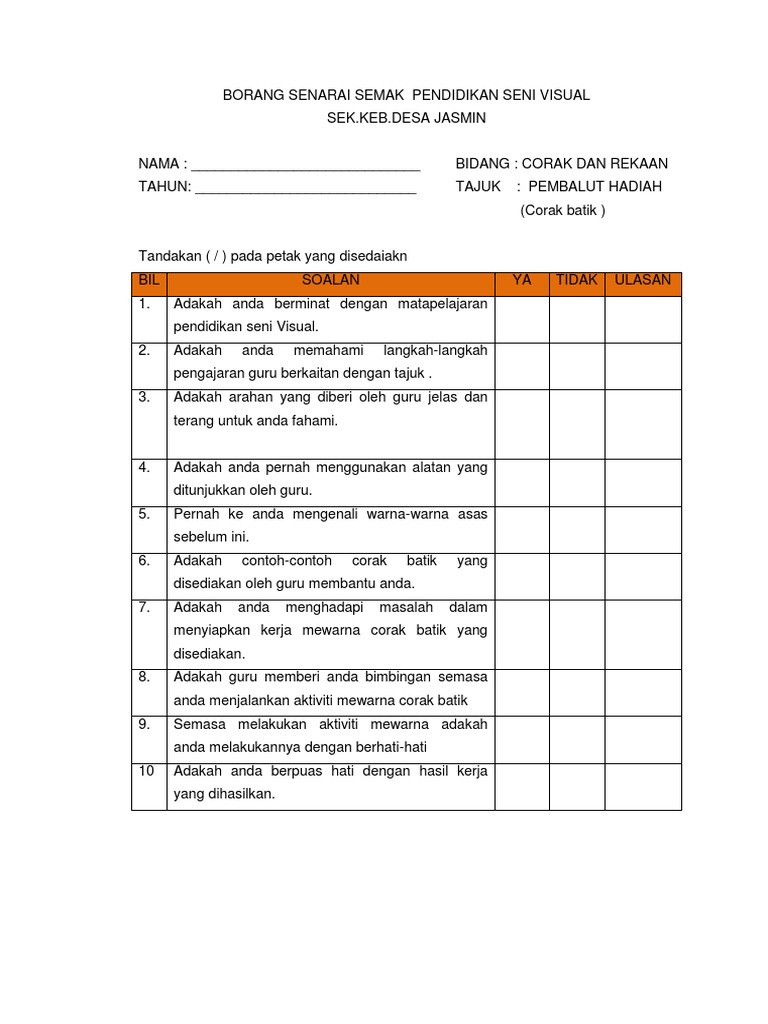 Related : Contoh Borang Senarai Semak : Pdf lampiran 8 senarai semak lawatan penilaian kendiri abdull manaf nordin academia edu..